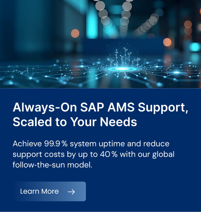 With 24×7 Global Support Centers in India, the US, and Mexico, we keep your SAP systems running seamlessly—anytime, anywhere.