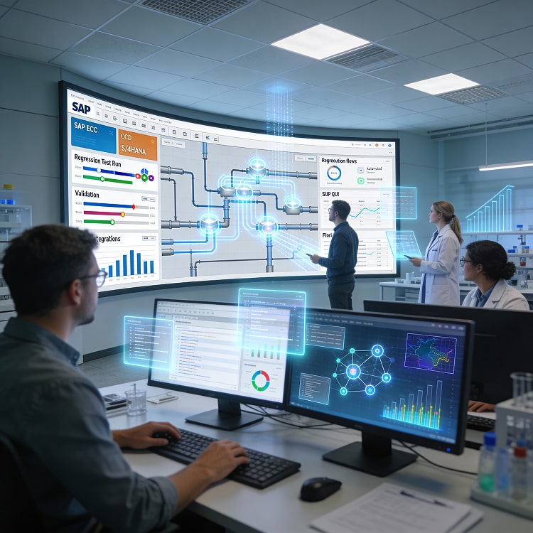 SAP regression automation, script development, continuous testing, performance automation, S/4HANA upgrade automation, risk-based coverage.